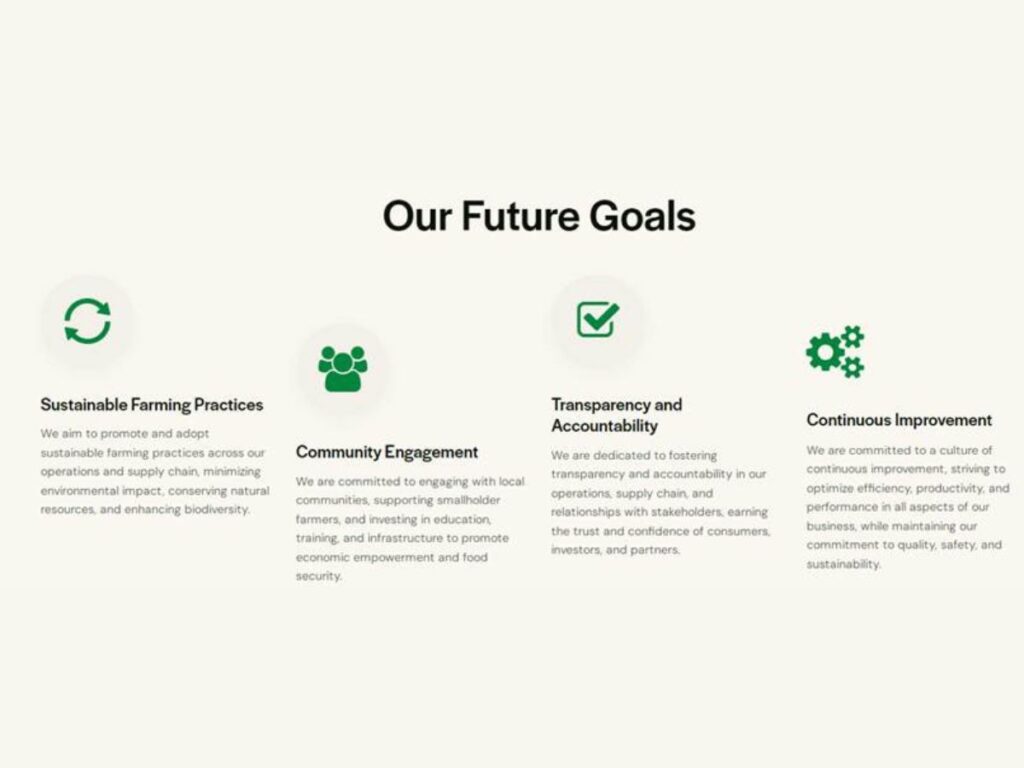 Company has a vision tbe a global leader in the food and agriculture industry, renowned for excellence, sustainability, and social responsibility. We envision a future where everyone has access to safe, healthy, and affordable food, and agriculture drives environmental stewardship and economic development.